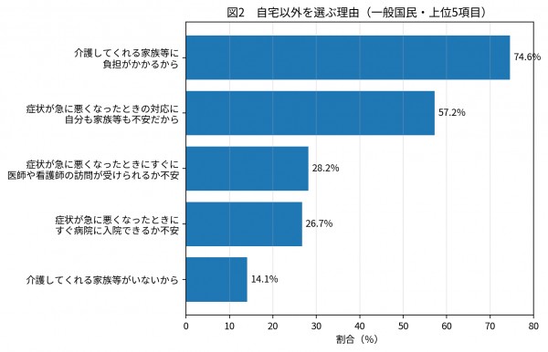 同じ調査では、自宅以外を選んだ理由のトップが「介護してくれる家族等に負担がかかるから」74.6%、